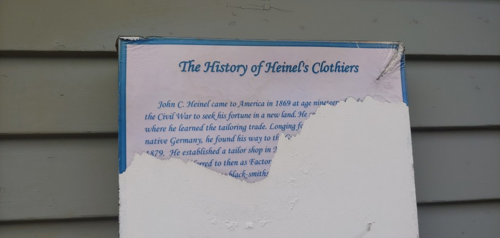 John C Heinel came to America in 1869 and decided to settle down in Manchester Center, Vermont. He regularly advertised his hot new styles of men’s and children’s clothes at the best prices in the local newspaper, the Manchester Journal, at around the turn of the century. Then Heinel’s Clothiers closed and eventually the storefront was replaced by a gym. When i passed by the gym had perished as well, wearing a large ‘For Lease’ sign displayed prominently next to this disheveled one, removed from its relevancy. The gym’s lifeless body was still full of machines and equipment and darkness.