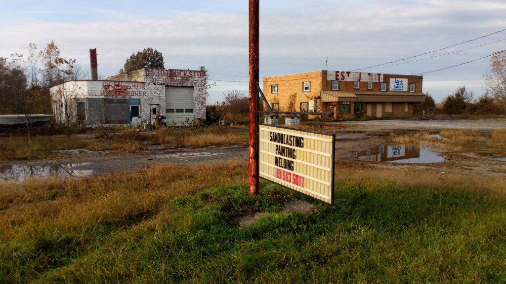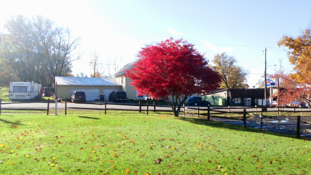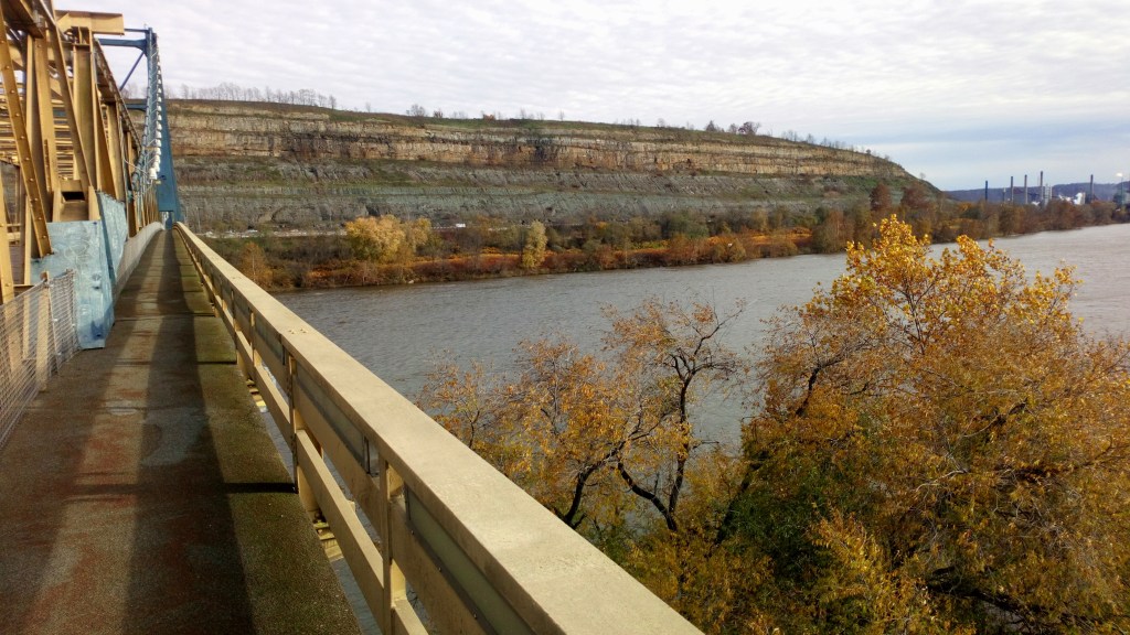 Many days pedaling down numbered gridded roads through farmlands. Shorter days as the terrain got more textured with hills closing in on eastern Ohio. Plenty of rain too, i waited out a three day rainstorm around Halloween in Bucyrus. My sleeping spots migrated as the rains flooded my dry options, from highway underpass to picnic pavilion to hotel with spirit sodden. It was still cloudy as i left town.