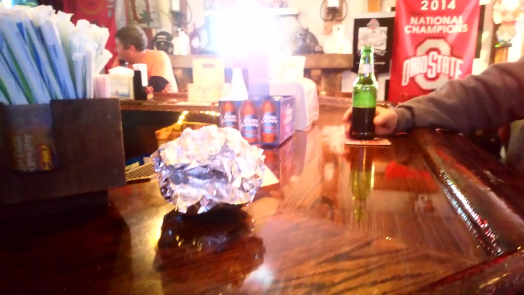 I sit at the bar and present my ID to the bartender. ‘Michigan?!’ Record scratch – the customers turn to look and i survey my surroundings. Crimson and white everywhere, nary an eye without an accompanying buck in sight. The club loyalties of these NCAA football rivalries run deep, the buff lads of Ohio State and the University of Michigan foster a healthy one. I let them know i went to Central Michigan University and i cared little about this region’s conflict and the ambience returned. We spoke of my journey and the owners offered their deck to me to sleep for the night. A wise move on their part because i nearly closed out the bar that night before laying down to sleep, the company was comfy. deck popped a hole in my sleeping pad tho