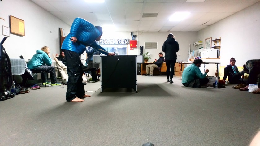 the hiker trash takes shelter inside as the cold winds whip through camp, feels like high 30s