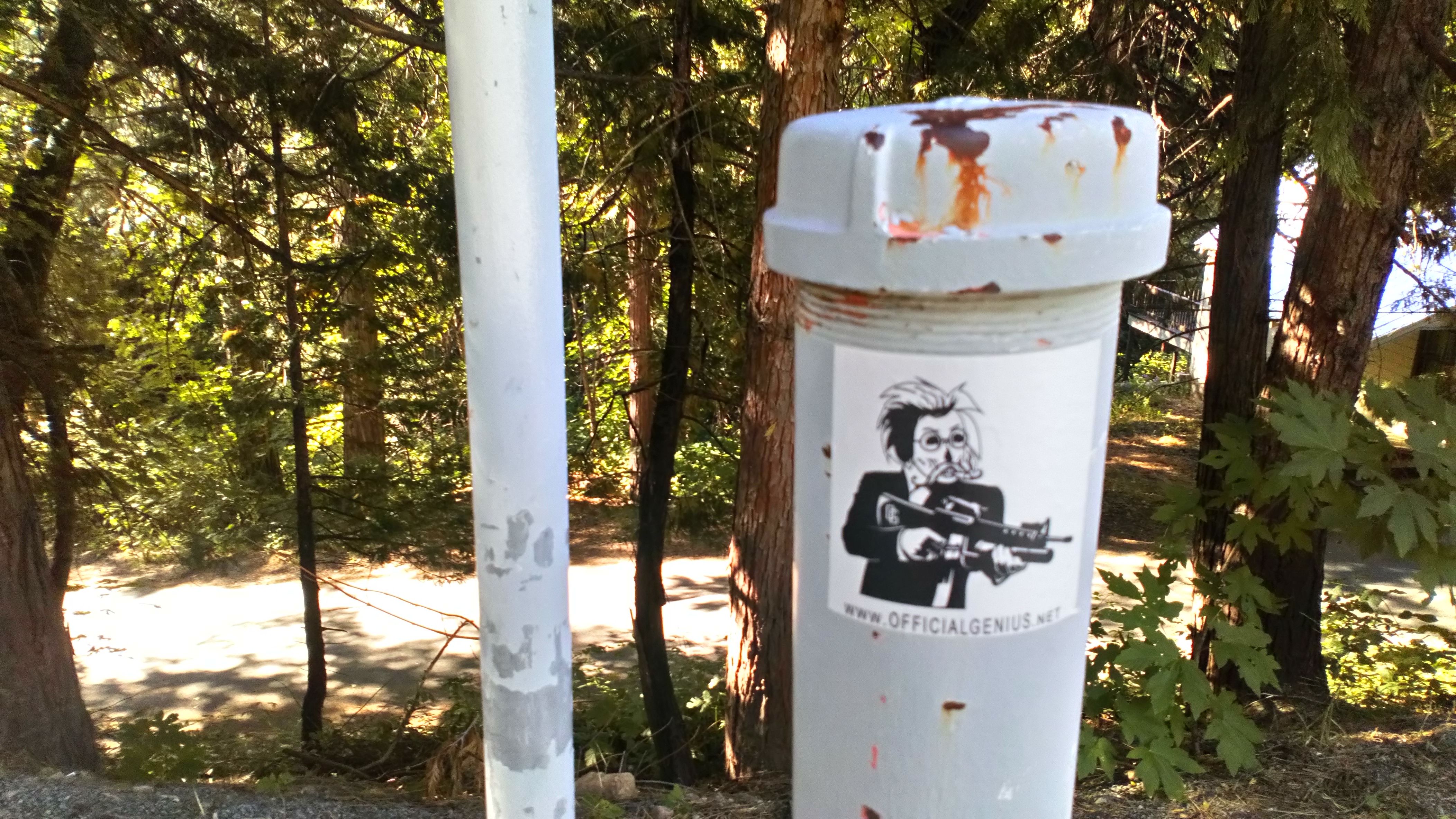 there was one gas pump, one side of it didn’t work. no attendants, credit card only. this sticker was there