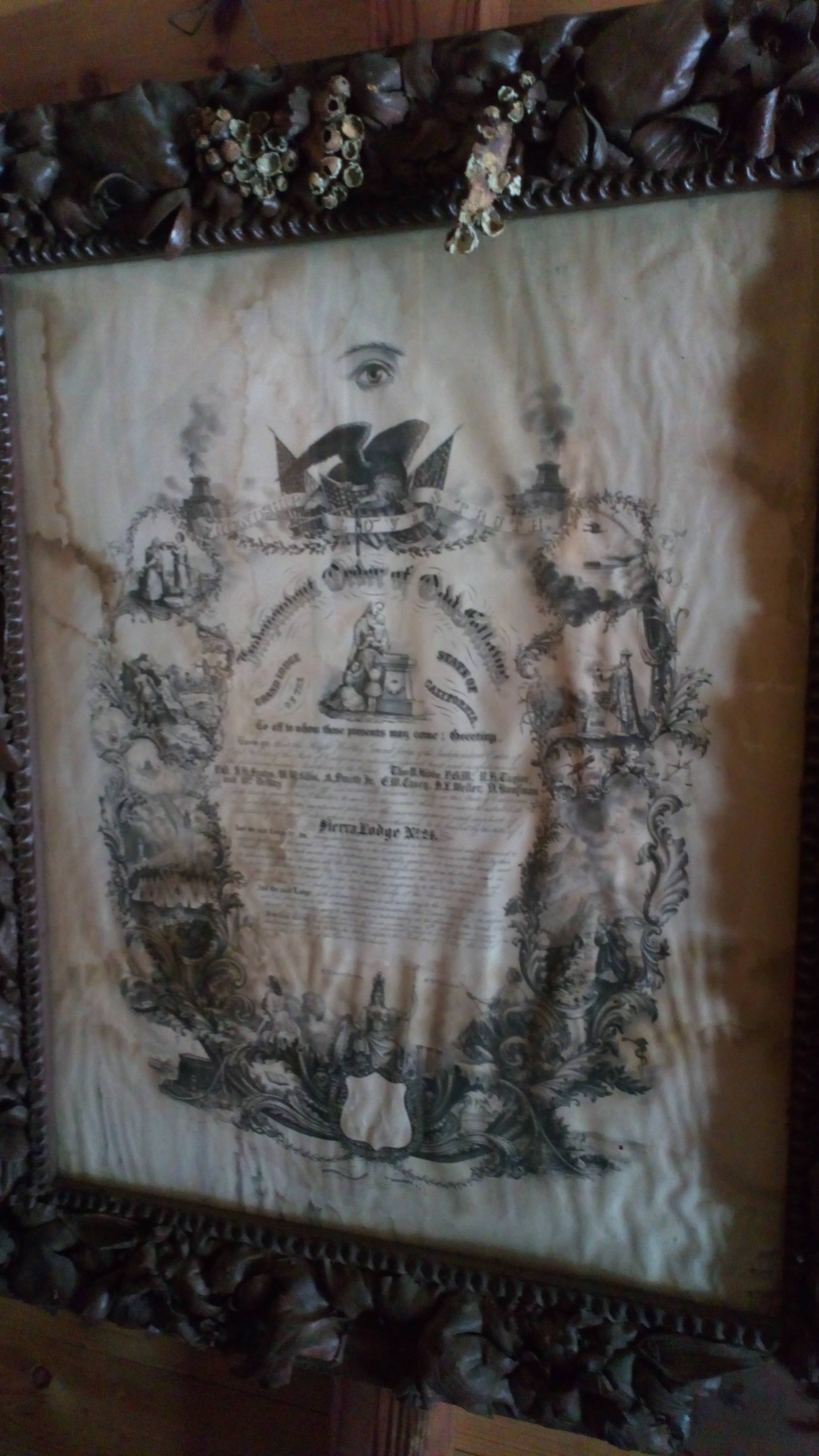 this building once held wells fargo and was the lodge for a fraternity kind of like the masons but their imagery is more getting drunk and pranks and less end of days
