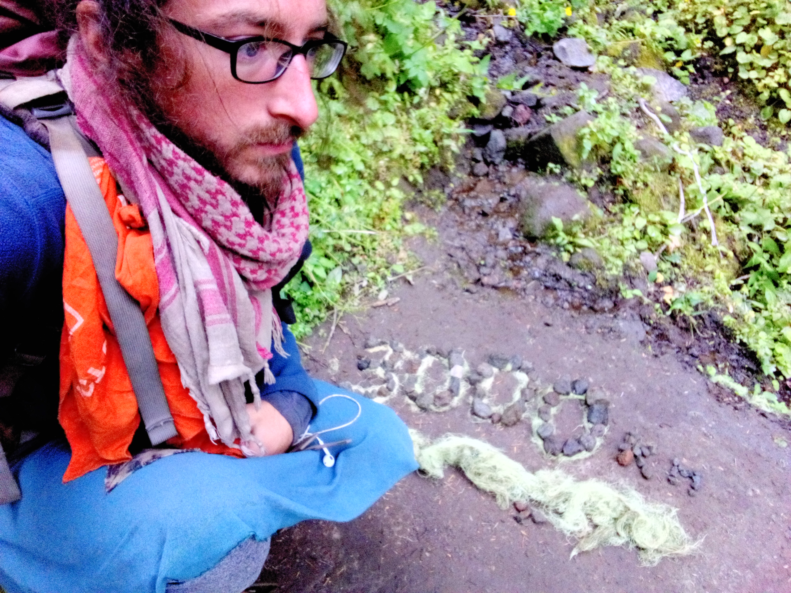 also i made this. i passed by a number of 3000km markers over the course of a couple few miles so i assume 3000km is more of a state of mind than a distance measurement. the thousand yard stare was for a bit, that the will of the trail overtook my consciousness and i crafted this shrine in a fugue state.