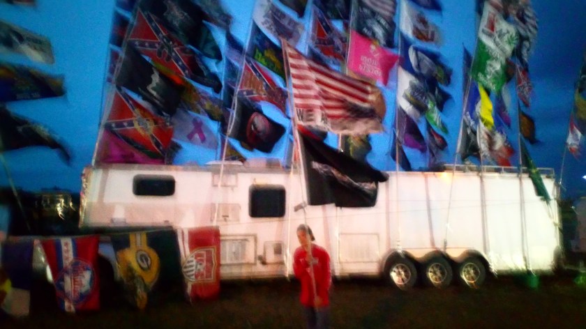 As we were scouting our sleeping spot that night we passed by a big rv selling flags and never have i seen so many flags. She expressed an interest in burning one of the flags they had on display and i voiced my concern about that idea.